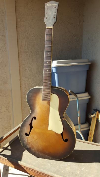 I just joined. I'm a 72 year old picker of acoustic and electric guitars. I've had many instruments over the years but my very first guitar was my 16th birthday present from my parents. In 1959 they took me to Sears where I picked out a Silvertone arched top. It was $35 with the case. I loved that guitar and cut my teeth on it. It was a beautiful "Kentucky blue" and ivory. They also had sunburst but I liked the blue. I had the guitar for a few years but I don't remember what eventually happend to it.
